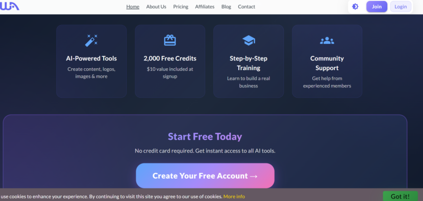 The only way to join WA is to start for free so that you can test-drive and experience the platform for yourself before you ever make any level of commitment.